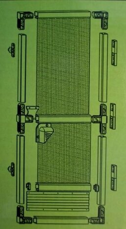 Deze hordeur wordt geleverd als bouwpakket. Handleiding is bijgesloten.