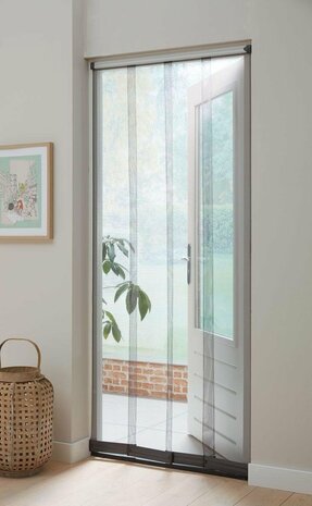 Dit Bruynzeel lammellenhor is voorzien van 4 zwarte gaaslamellen. Ideaal want zo krijgen ook kleine vliegjes geen kans om naar binnen te vliegen. Het lamellen gordijn is een goed alternatief voor een hordeur. Het geheel is gemakkelijk op te hangen en prettig in gebruik.