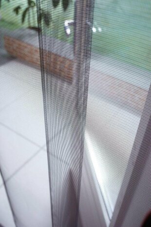 Het horgordijn is eenvoudig zelf op maat te maken en aan te brengen aan de binnen of buitenkant van de deur met schroeven op het kozijn en bovendien gemakkelijk te verwijderen in de winter.